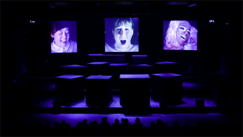 iScreen,YouScream! Is a social media opera for Ensemble (flute,clarinet, saxophone, synthesizer, percussion, trombone, violin, viola, cello, conductor), actor, live video and electronics. It was premiered in 2017 in Stuttgart. All 11 performers were in 11 black boxes on stage respectively, a cameraman walked around went into each box and projected them on 3 screens real-time.