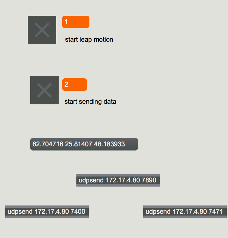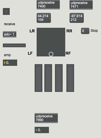 404 can spatialize Sachiko’s voice with Leap Motion. The data of her hand position was sent to the Sound Computer through UDP protocol. 4-channel sound spacialization and reverb are applied to the streamed voice.
