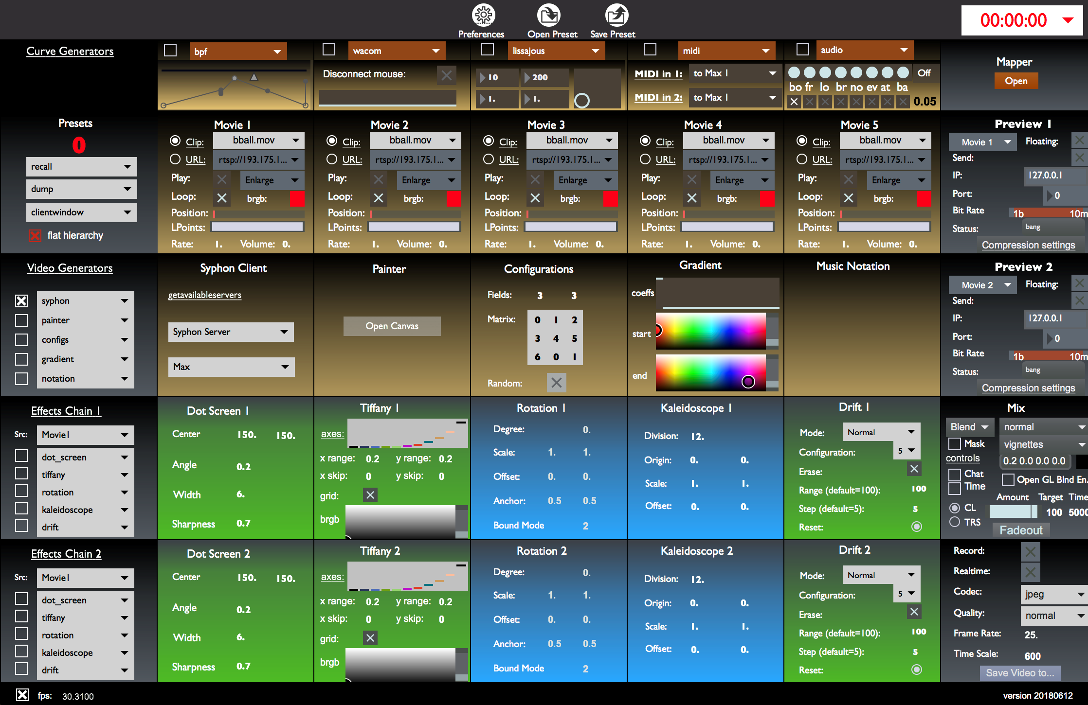 Quitet.net Viewer allows the realization of full-fledged multimedia pieces by taking advantage in a modular environment of the Jitter video processing capabilities. Thus, users can easily add new processes.