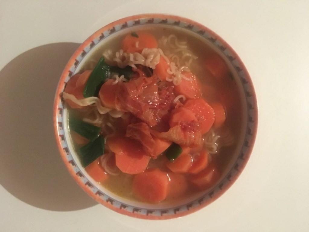 Pandemic makes my need even lower. The best food I can now image is just anything with soup and vegetable. So luxury instant noodle again: